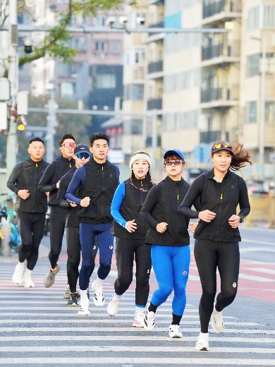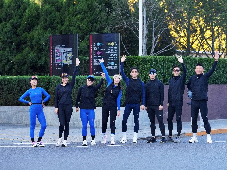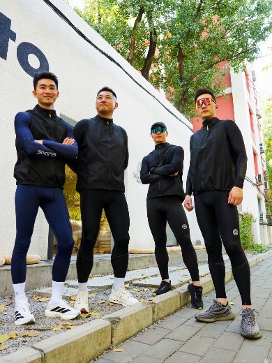 清晨,一群身着SKINS压缩装备的跑者